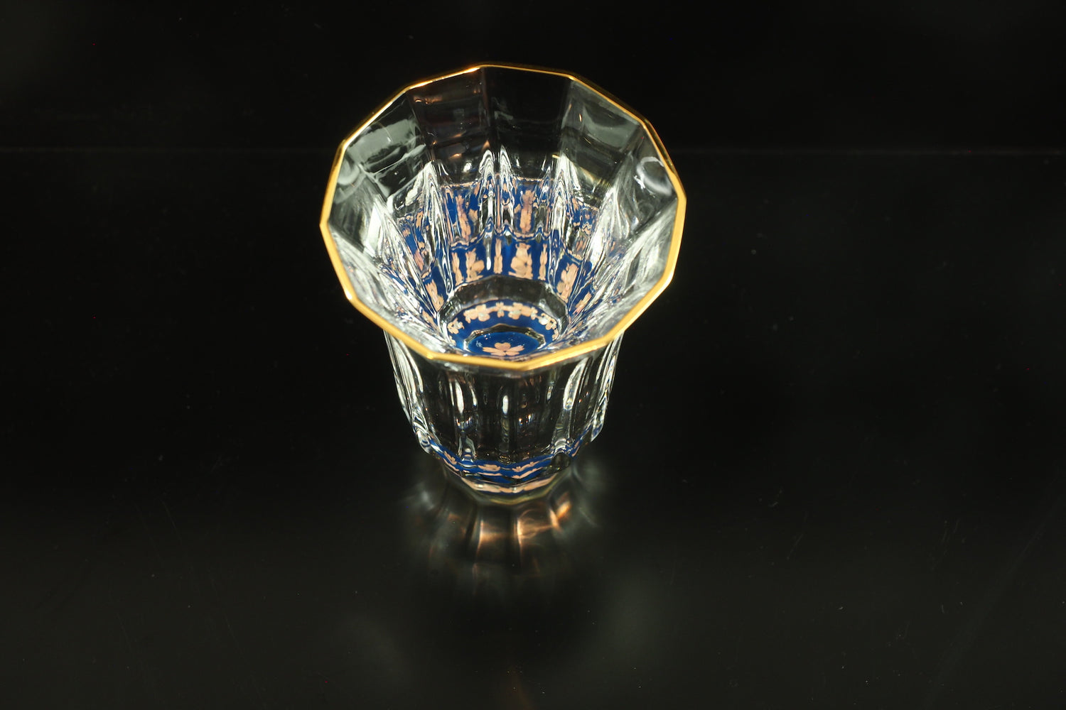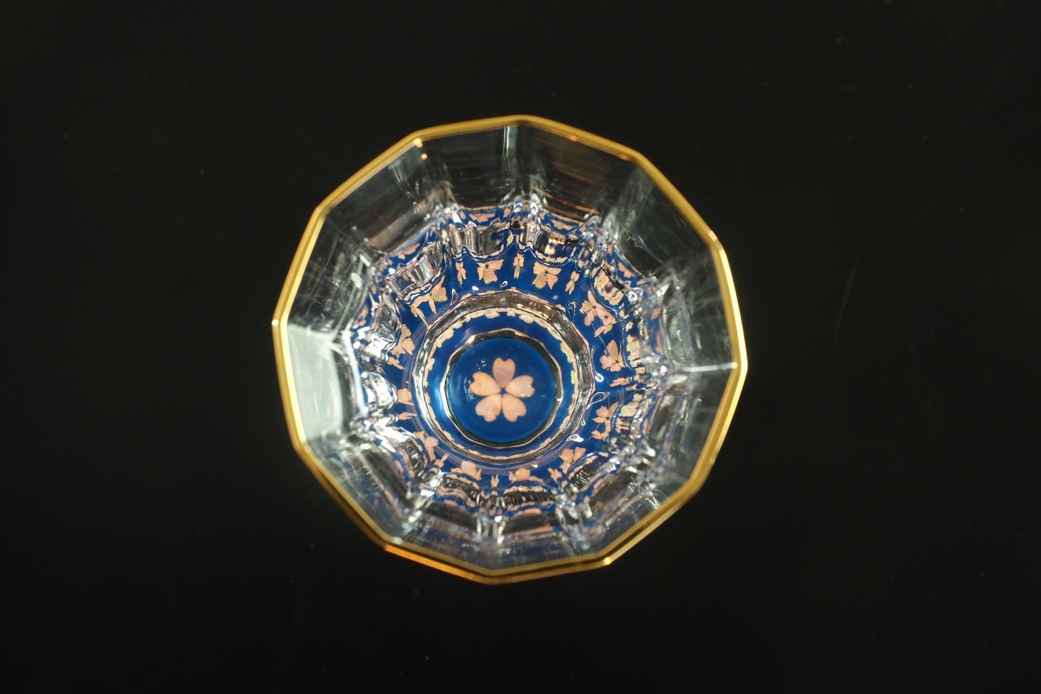 "Raden" Lacquer Coated Glass 70ml - Kaleidoscope Glass with Cherry Blossoms Pattern (blue)