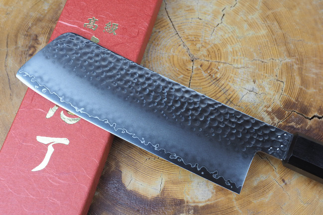 Sakai Jikko "Loco Black" Wa-Nakiri Knife VG10 Core Hammered Finish Black Japanese Oak Handle (16.5cm)
