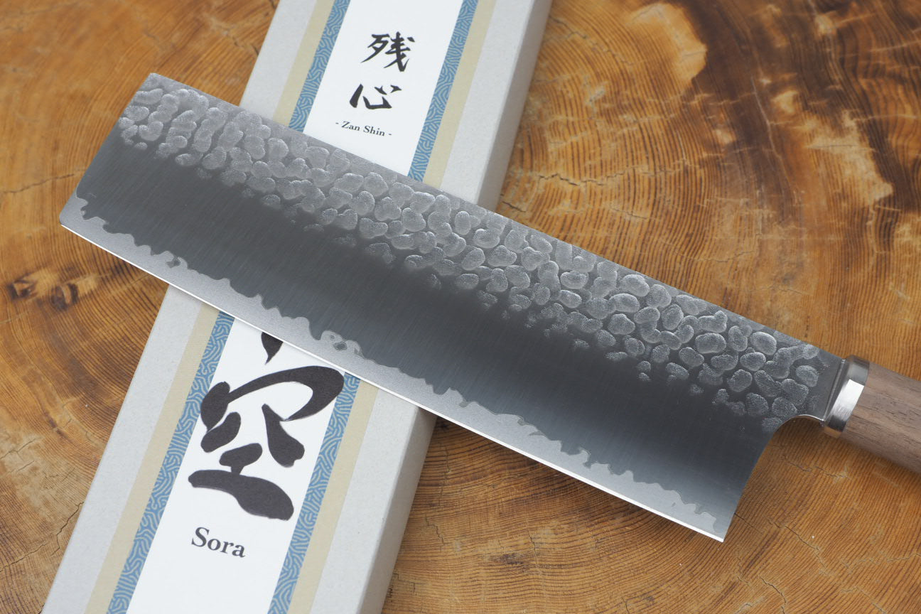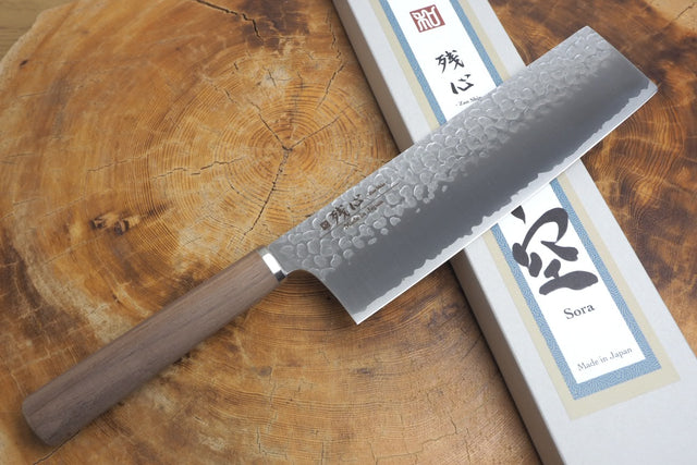 残心 Zan Shin SORA (from Seki) - VG10 Nakiri Knife Hammered Finish Knife with Walnut Handle 18cm