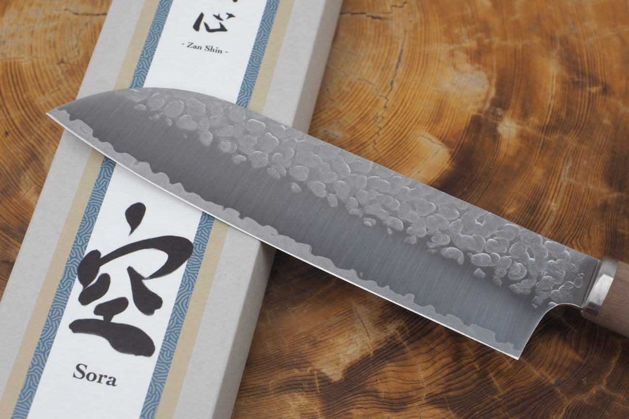 残心 Zan Shin SORA (from Seki) - VG10 Santoku Hammered Finish with Walnut Handle 16.5cm
