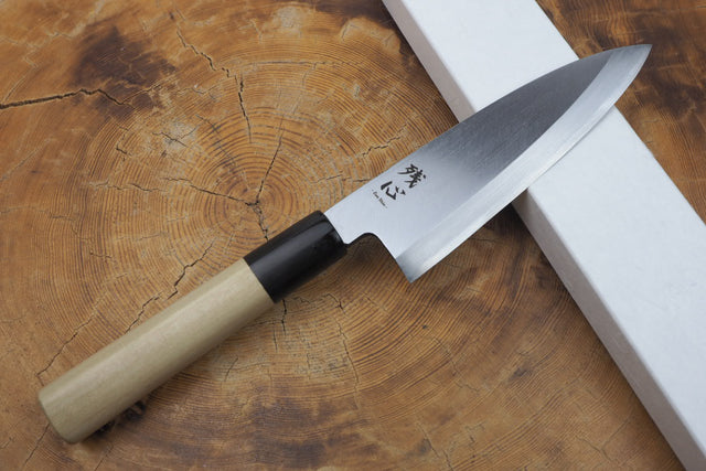 The Funayuki knife, translating to "go-to-boat," was originally designed for fishermen to prepare quick meals aboard ships. Similar to the deba knife, the Funayuki is used for filleting fish, but with a key difference: its blade is thinner and more precise. While the larger, thicker deba knives are ideal for cutting through the tougher flesh of larger fish, the Funayuki knife offers enhanced maneuverability, making it easier to achieve smooth, delicate cuts. Its slender blade excels in filleting smaller fish, where the bulk of a deba knife would be cumbersome. Whether you're working with delicate fish or seeking a more agile tool for precise filleting, the Funayuki knife delivers exceptional performance.